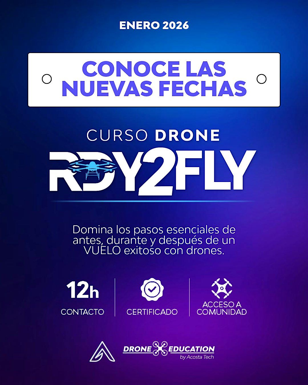 No dejes pasar esta oportunidad única para perfeccionar tus habilidades y potenciar su carrera en el emocionante mundo de los drones. Los cupos son limitados, así que asegura tu lugar lo antes posible.