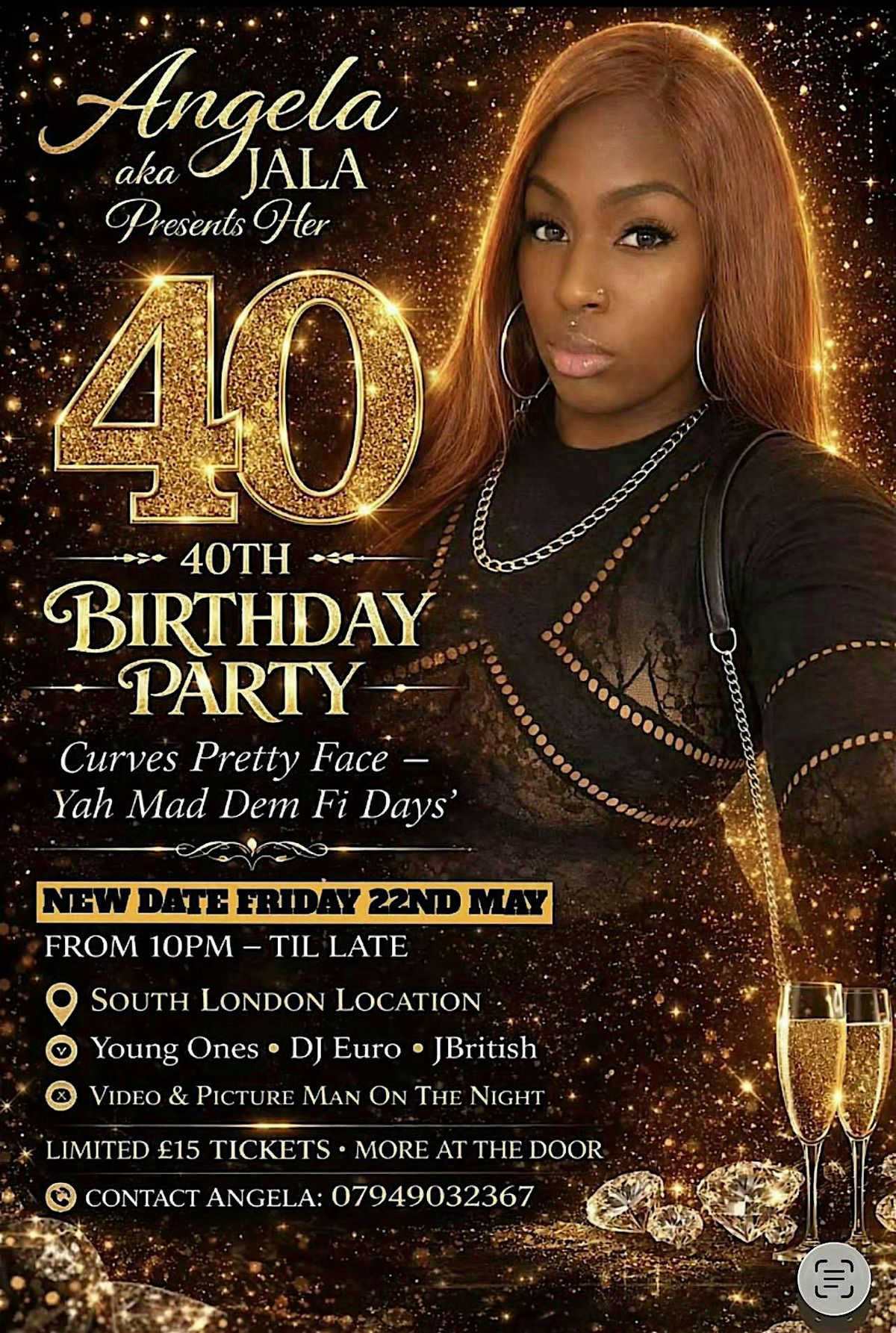 Angela aka Jala presents her 40th Birthday Party “Curves Pretty Face - Yah Mad Dem Fi Days”. Friday 22nd May from 10pm-LATE!