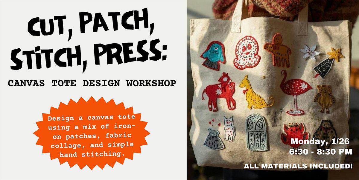 In this session, we’ll explore tote design through composition, texture, and fabric usage rather than painting or machine sewing. You’ll design your tote using a curated selection of iron-on patches and fabric scraps, secure elements with fabric glue and heat-set techniques, or simple hand stitching using needle and thread.