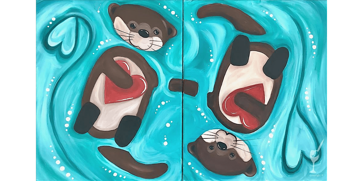 Cute Otters Floating With Hearts - Paint and Sip in San Antonio | Classpop!\u2122