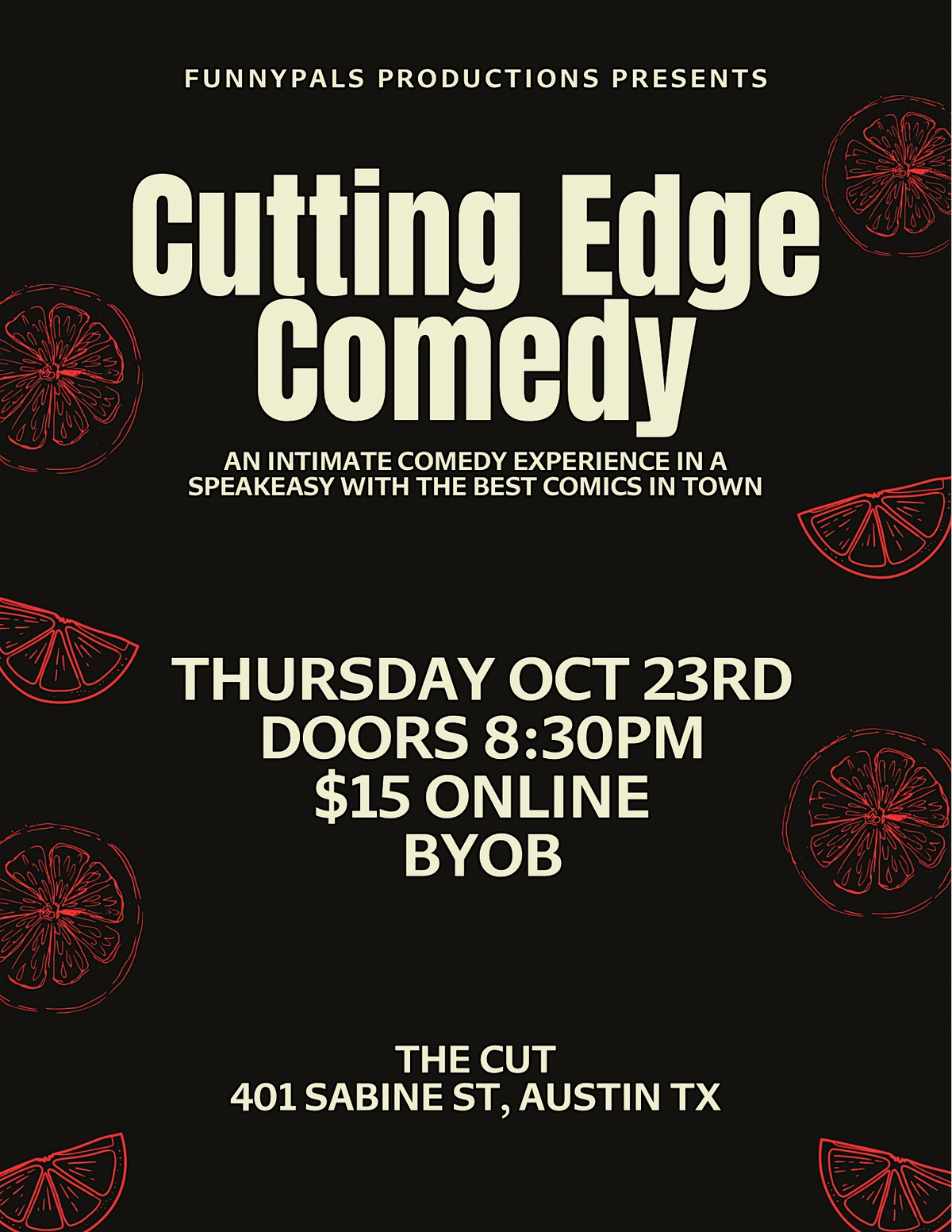 Come laugh with the best comedians in town at Cutting Edge Comedy! Located at The Cut in the Speakeasy room BYOB with food available!