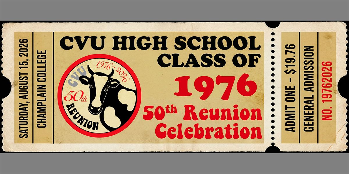 Welcome to the CVUHS 50th Reunion! Join us for a night of reminiscing, catching up, and creating new memories with old friends. The event will be held at the Champlain Room & Terrace on the campus of Champlain College in Burlington - a perfect venue to celebrate our milestone together. Come and reconnect with classmates, share stories from the good old days, and enjoy a night of laughter and nostalgia. Don't miss this chance to celebrate fifty years of friendship and memories at CVUHS. See you there!