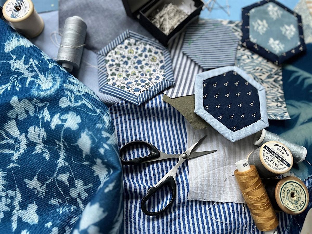 Your prints will dry, ready to be sewn in the afternoon session. You will learn how to design, cut and hand sew your printed fabrics into a beautiful patchwork quilted project that you can continue to grow at home.
