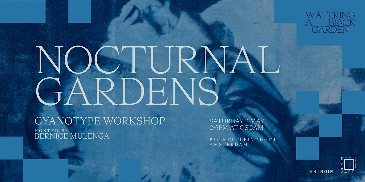Nocturnal Gardens is een cyanotype- en collageworkshop die Zwart queer nachtleven, intimiteit en vreugde onderzoekt als vormen van zorg. De workshop wordt gegeven door kunstenaar Bernice Mulenga. Aan de hand van de metafoor van de tuin worden deelnemers uitgenodigd om momenten van nabijheid, beweging en aanraking, vaak ervaren in het donker, opnieuw te interpreteren als momenten van voeding, rust en collectieve zorg. Met behulp van cyanotypie, een door de zon geactiveerd fotografisch proces, werken deelnemers met afbeeldingen, stof en water om gelaagde blauwgetinte afdrukken te maken.