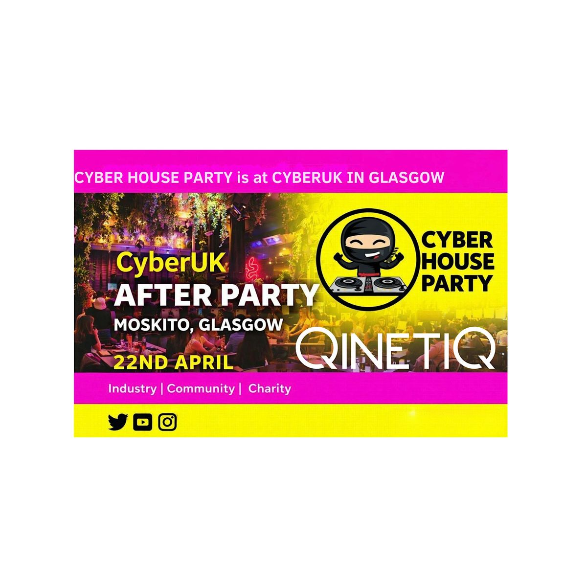Join us at Moskito Bar, Glasgow on 22nd April for the Cyber House Party x CyberUK After Party , a proper fringe event with DJs, great people, and real conversations (no sales pitches, no awkward networking).