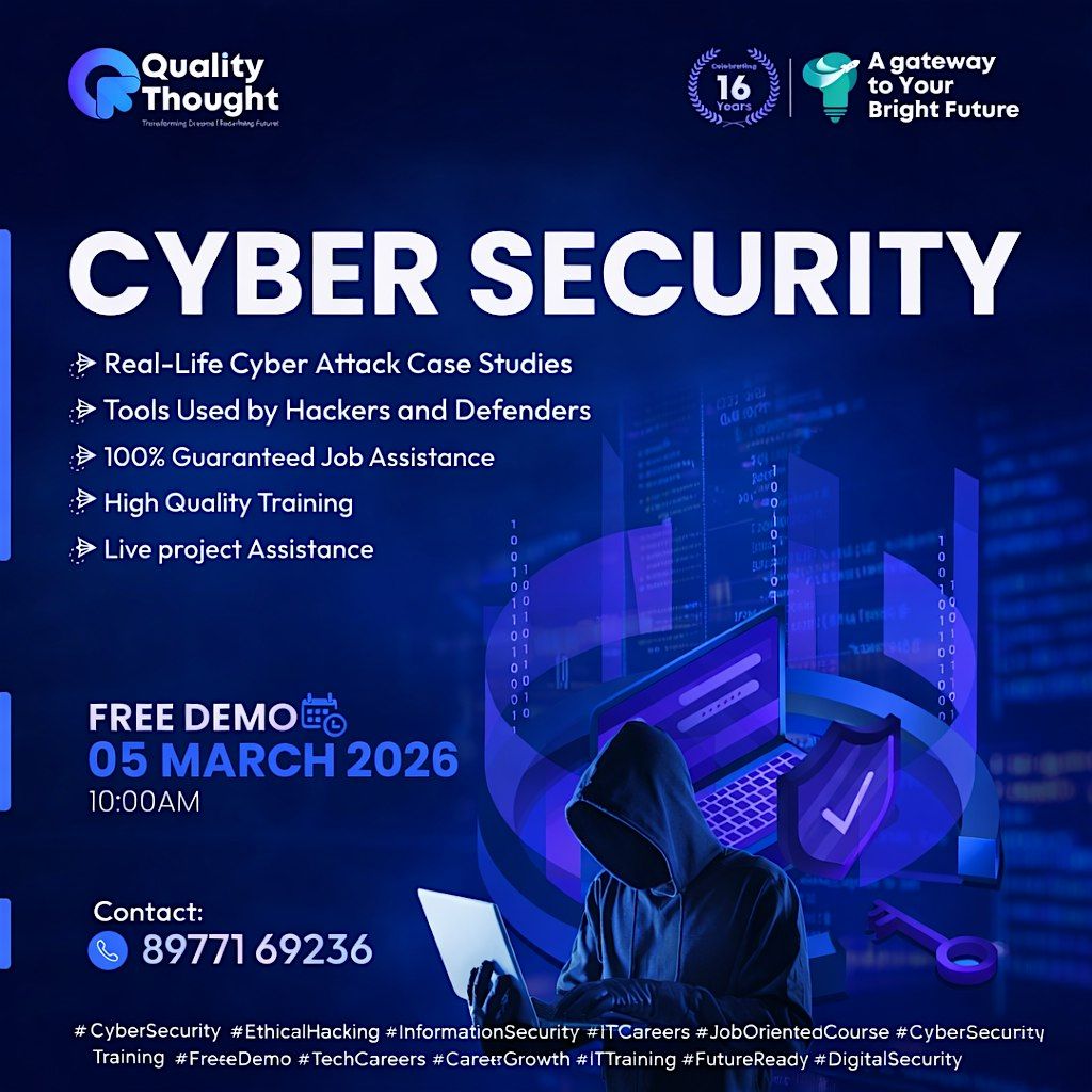Join us at on March 05th, 2026 at 10:00 AM (IST) for a fun and informal demo session! Whether you're curious about cyber security or thinking of diving deeper, this is your chance to get a sneak peek without any pressure. Come hang out, ask questions, and see what the course is all about. Don't miss this cool opportunity to boost your skills in a relaxed setting!