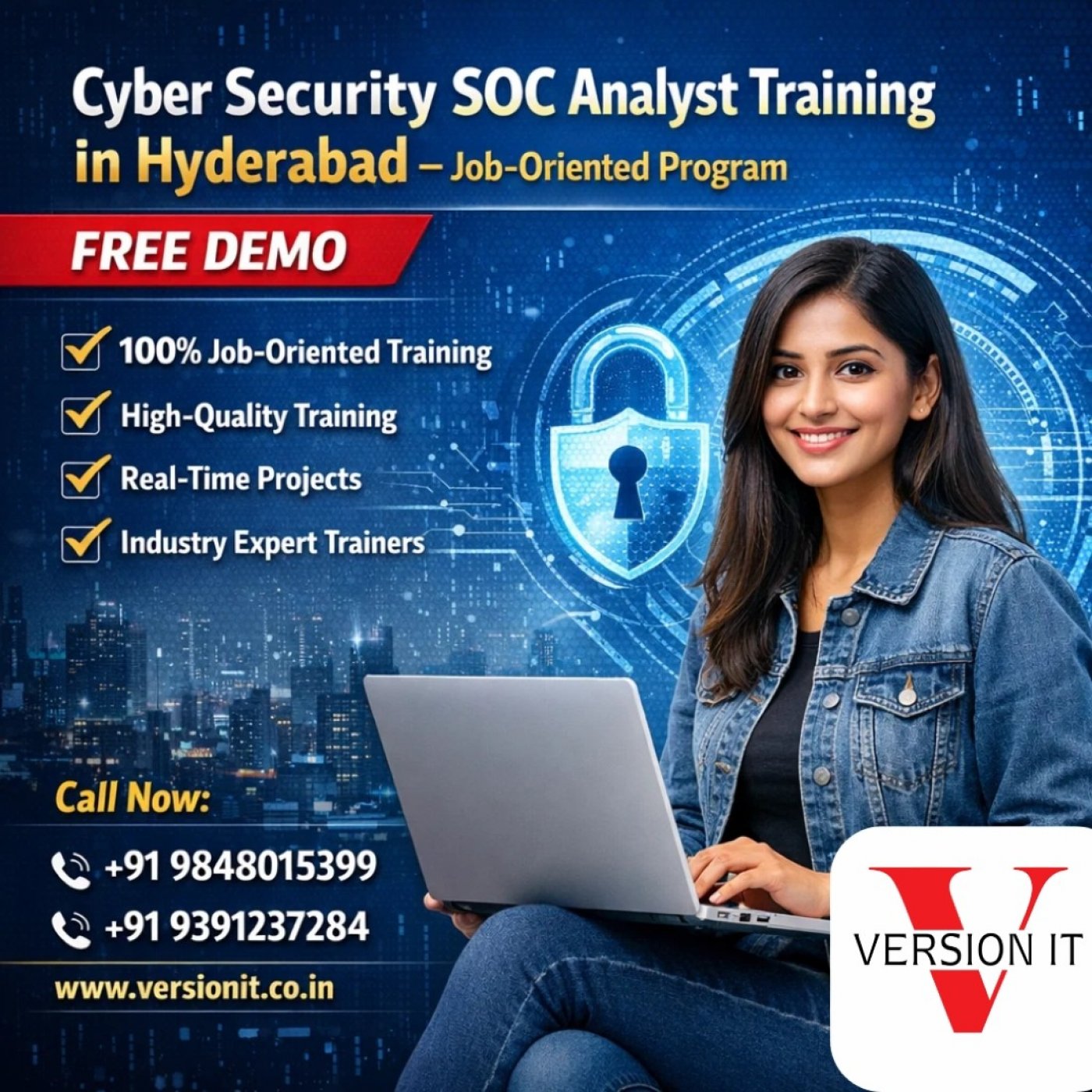 Looking to build a career in cybersecurity? Join our Cyber Security SOC Analyst Training in Hyderabad and gain hands-on experience with SIEM tools, incident response, and real-time monitoring. Learn from industry experts and become job-ready with practical labs and placement support.