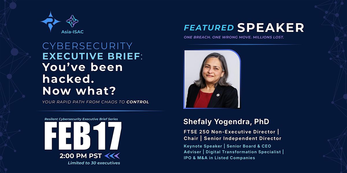 Join Resilent, in partnership with Asia-ISAC, for a closed-door Cybersecurity Executive Brief for C-Suite leaders and senior cybersecurity executives accountable when a cyber incident becomes a business crisis.