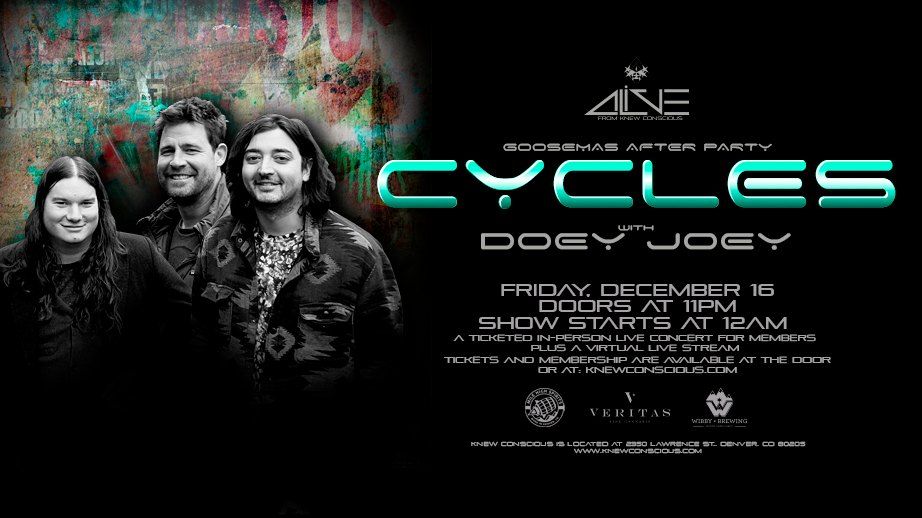 Join us for CYCLES w/ Doey Joey on Friday, December 16th. Doors are at 11 pm and music starts at midnight and goes till late. Come by after Goosemas and keep the music and good vibes going all night long!