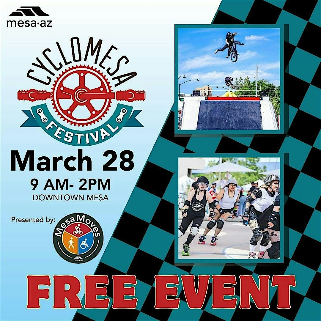 CycloMesa is rolling into town! This FREE family-friendly bicycle festival invites everyone to enjoy a fun, active day celebrating bikes and community. Plus receive free helmets, snap a complimentary photo at our CSAP booth and show off your skills at our bike rodeo. But don't forget the best part! MesaMoves and Bike Mesa are cohosting a quick 40-minute family friendly community bike ride through downtown to kick off CycloMesa! To join the ride, sign the waiver and get ready to unlock a new adventure!