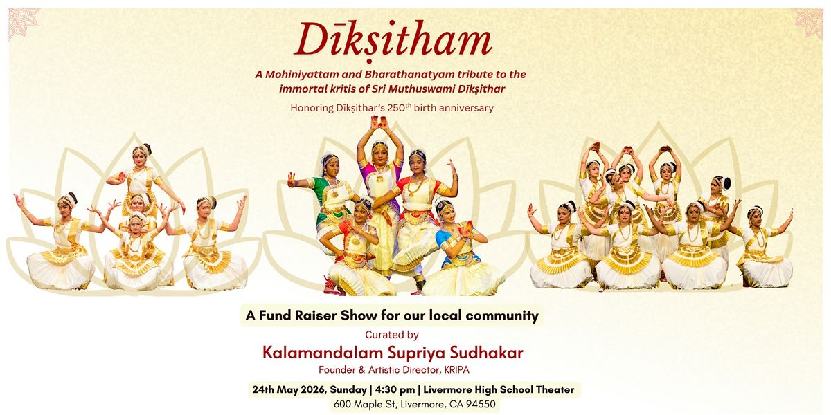 Experience Dīkṣitham: A delightful Mohiniyattam & Bharathanatyam confluence honoring a 250-year legacy. All proceeds support our community.