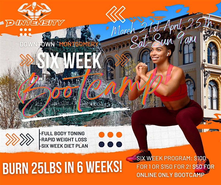 A six week outdoor bootcamp designed to burn 20 pounds within 6 weeks while getting a toned and stronger body. Diet plan is included
