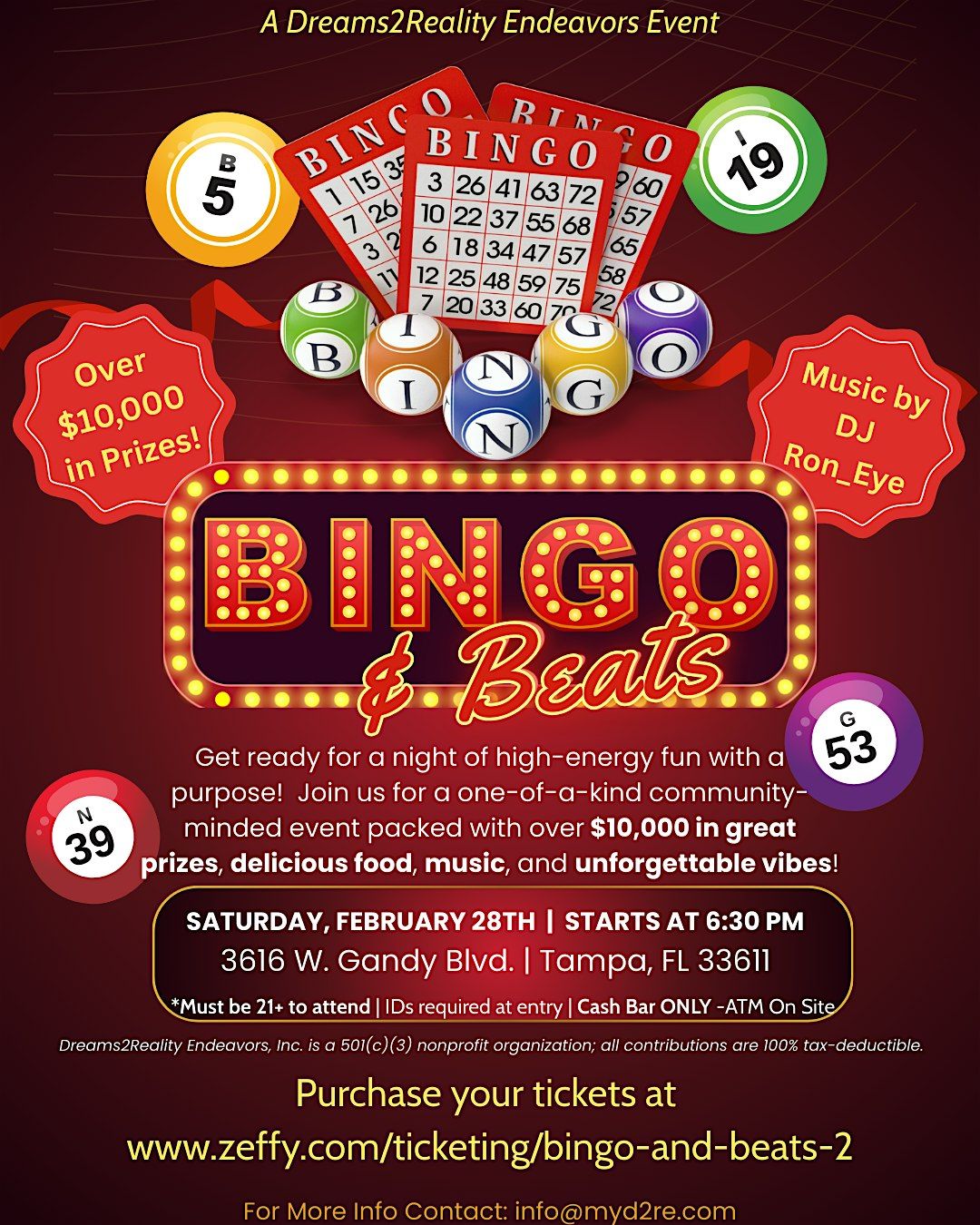 Get ready for an unforgettable evening of music, laughter, and giving back at “Bingo & Beats”—a high-energy, 21+ community-focused fundraiser hosted by Dreams2Reality Endeavors, Inc.