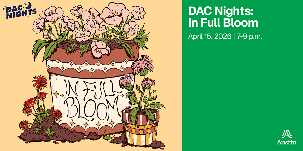 Come to DAC Nights: In Full Bloom and decorate a flowerpot to light up your Spring. DAC staff will have supplies of all kind, with instructions on how to wrap pots in fabric, create decoupaged designs, and paint your pots to last the season. Bring a plant to swap with participants and diversify your home garden!