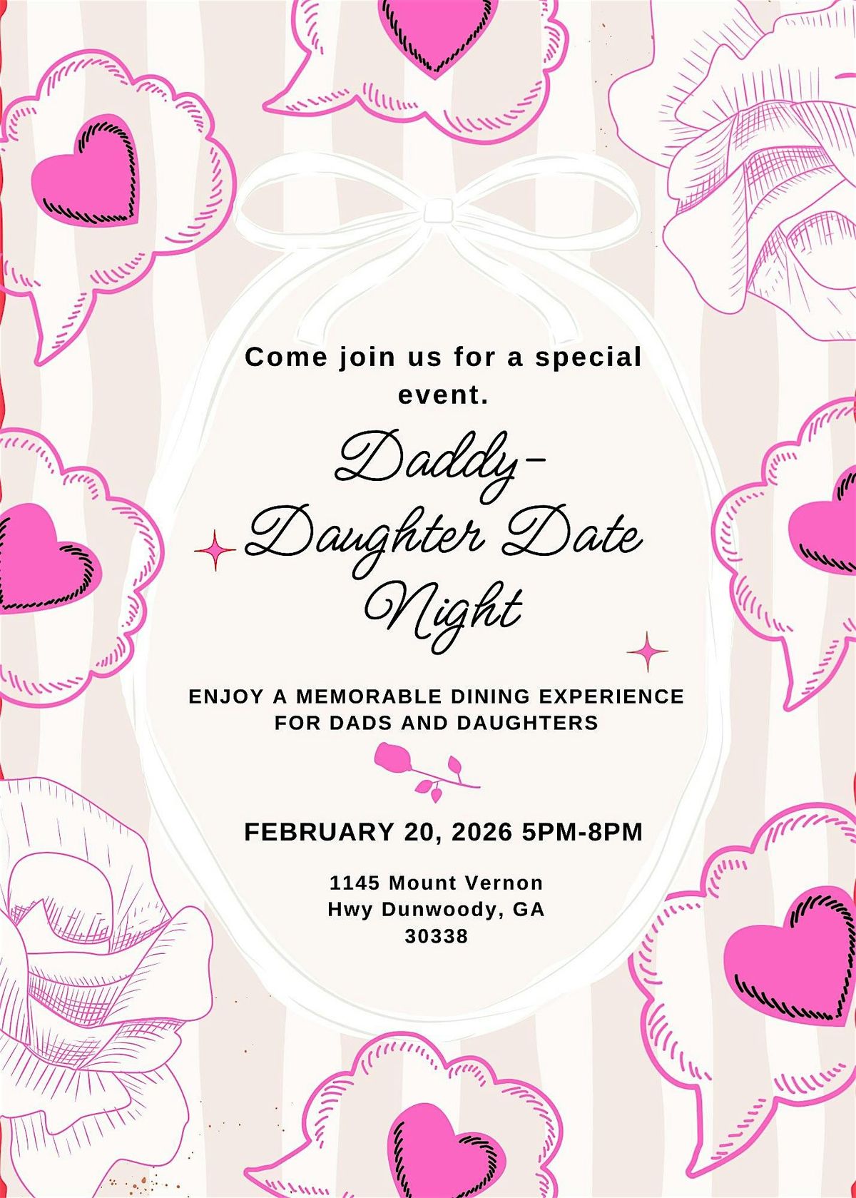 Come create unforgettable memories and enjoy a magical evening designed just for dads and their daughters! ✨ Join us for our annual Daddy Daughter Date Night.