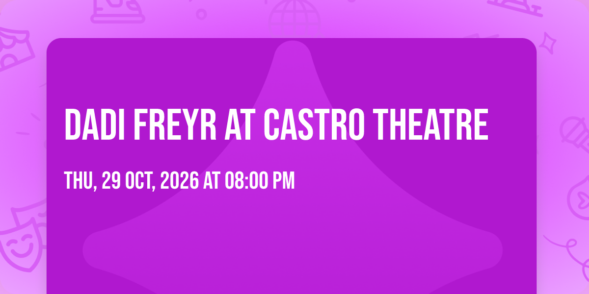 ✨ Experience the magic of Dadi Freyr at Castro Theatre, where moments become memories that last a lifetime! 🏛️ The iconic Castro Theatre in San Francisco, CA sets the perfect stage for an unforgettable celebration on October 29th, 2026 at 08:00 PM. 🌟 It's been a curated experience that brings together the best of entertainment and innovation, creating an atmosphere of wonder and excitement. From the moment you arrive, you'll be immersed in a world where the ordinary transforms into the extraordinary. 🎊 Book early to secure your place in what promises to be an event that will be talked about for years to come!