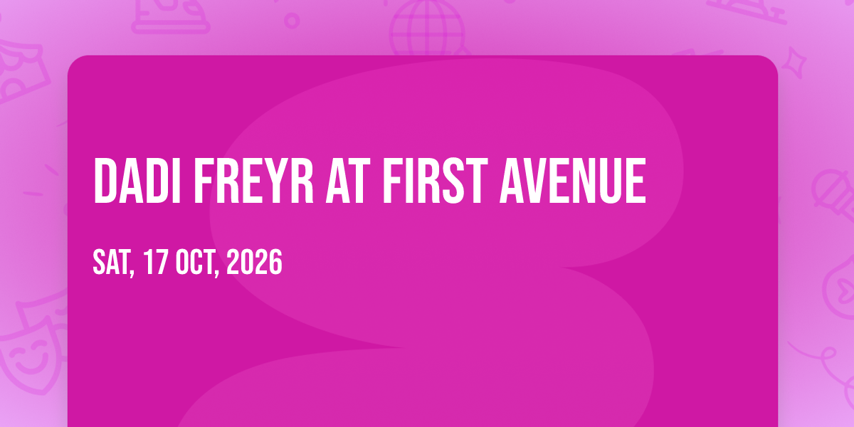 β¨ Enter a world of endless possibilities at Dadi Freyr at First Avenue, where every moment tells a story! ποΈ The stunning First Avenue in vibrant Minneapolis, MN transforms into a realm of wonder on October 17th, 2026 at 08:00 PM. π They have crafted an experience that goes beyond the ordinary, combining elements of surprise, delight, and pure entertainment. Every detail has been thoughtfully considered to ensure your journey with us is nothing short of extraordinary. π― Join fellow adventure seekers and memory makers in this celebration of imagination and innovation. π Reserve your spot today and be part of something truly special!