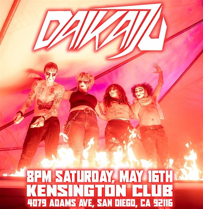 Daikaiju is a mysterious chimera of sound and imagery that was first sighted in the winter of 1999. Entities of sonic mayhem, Daikaiju takes the sound of waves crashing and shrieking atomic lizards and makes it rock in a way that instills shock and awe in all who experience their shows-a highly interactive and confrontational performance that literally draws the audience into the massive vortex of sound generated by the band. Concealed behind masks, this troupe of mystery people create a mutant style of epic, high energy instrumental rock that seamlessly incorporates a wide variety of musical styles including surf, punk, noise, metal, psychedelic and progressive rock.