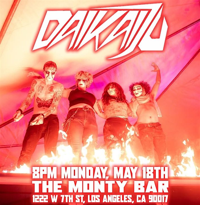 Daikaiju is a mysterious chimera of sound and imagery that was first sighted in the winter of 1999. Entities of sonic mayhem, Daikaiju takes the sound of waves crashing and shrieking atomic lizards and makes it rock in a way that instills shock and awe in all who experience their shows-a highly interactive and confrontational performance that literally draws the audience into the massive vortex of sound generated by the band. Concealed behind masks, this troupe of mystery people create a mutant style of epic, high energy instrumental rock that seamlessly incorporates a wide variety of musical styles including surf, punk, noise, metal, psychedelic and progressive rock.