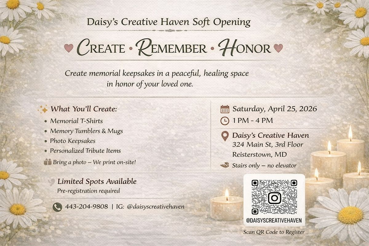 Daisy’s Creative Haven invites you to an intimate soft opening focused on remembrance, healing, and creativity.