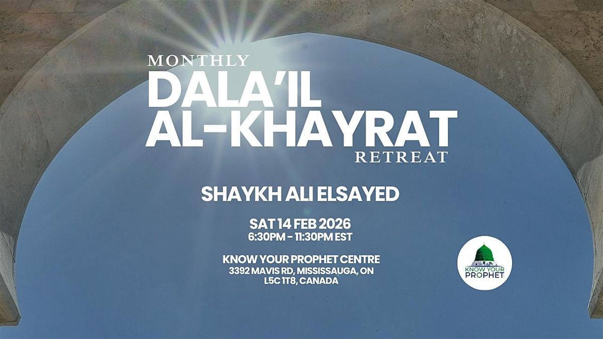 Join Shaykh Ali Elsayed for a spiritually uplifting monthly retreat at the Know Your Prophet Centre, featuring a full reading of Dala'il al-Khayrat by Imam al-Jazuli. Spend the night in deep remembrance, salawat upon the Prophet ﷺ, and soulful connection — from 6.30pm until 11.30pm. Open to all seekers looking to revive love for the Prophet ﷺ in their hearts.