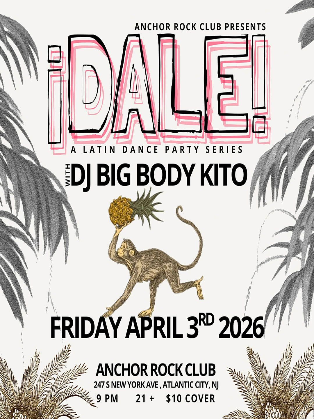 🎉 Welcome to Dale! - A Latin Dance Party, where the impossible becomes possible and dreams take flight! 🏛️ Join us at Anchor Rock Club in the heart of Atlantic City, NJ for an event that will redefine your expectations. 📅 On April 2nd, 2026 at 07:00 PM, witness the transformation of space and time into something truly magical. ✨ It's a curated experience combining the best of innovation, entertainment, and community spirit, creating moments that will be remembered for years to come. Whether you're a first-time visitor or a seasoned enthusiast, prepare to be amazed. 🎊 Book now to ensure your place in this unforgettable experience!http://maps.seatics.com/GeneralAdmissionEvent_2019-05-02_1655_SVGC_tn.gif