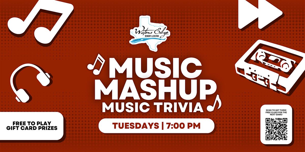 Join us for free live music trivia every Tuesday at 7pm at Waters Edge Winery & Bistro in Dallas! Free to play, and top teams win gift card prizes!