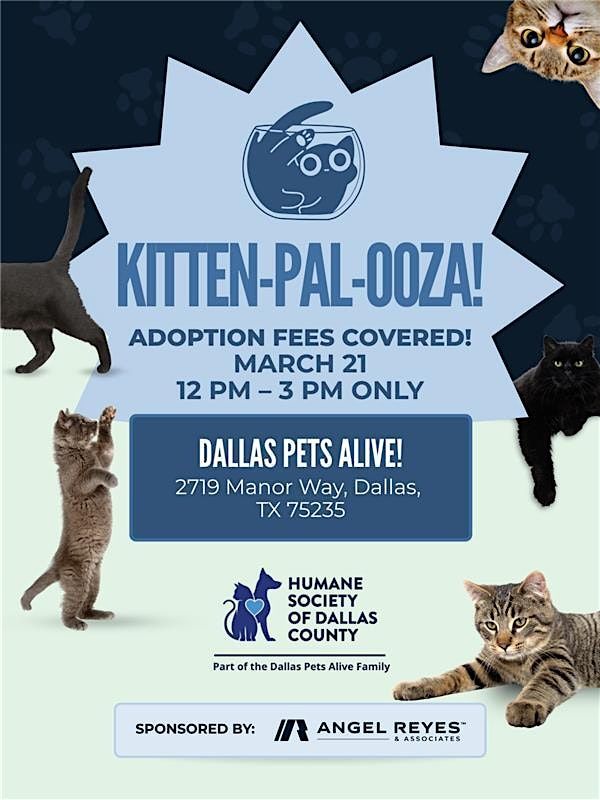 Dallas Pets Alive is partnering with Angel Reyes & Associates to provide local residents an opportunity to adopt cats and dogs, covering 100% of adoption fees for all approved families. Angel Reyes & Associates is also sponsoring Dallas Pets Alive’s Kitten-Pal-Ooza event, which coincides with the start of “kitten season,” a time of year when shelters experience a significant influx of kittens. Throughout the event, the organization will provide education on how to foster, adopt and properly care for young kittens.