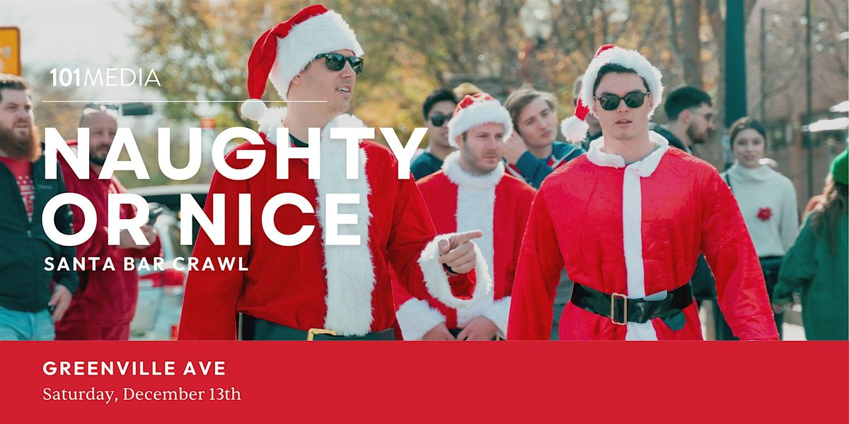 Nothing says holiday cheer like our iconic Naughty or Nice Bar Crawl, one of Dallas's most exciting holiday events! On December 12th from 12β7 PM, wear your ugly sweaters, tacky Christmas gear, or Santa suits and join us for an epic crawl across 20+ bars along Greenville, followed by a lively after-party. It's one of the best days of the yearβdonβt miss out!