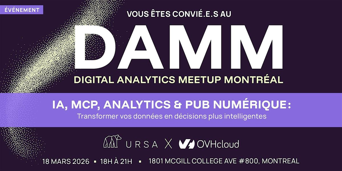 Le Digital Analytics Meetup de Montreal (DAMM) est l'équivalent Montréalais des Web Analytics Wednesdays qu'on retrouve partout dans le monde. Il s'agit d'un événement à la base de networking, mais aussi de découvertes sur le sujet du Digital Analytics (la cybermétrie selon l'Office québécois de la langue française).