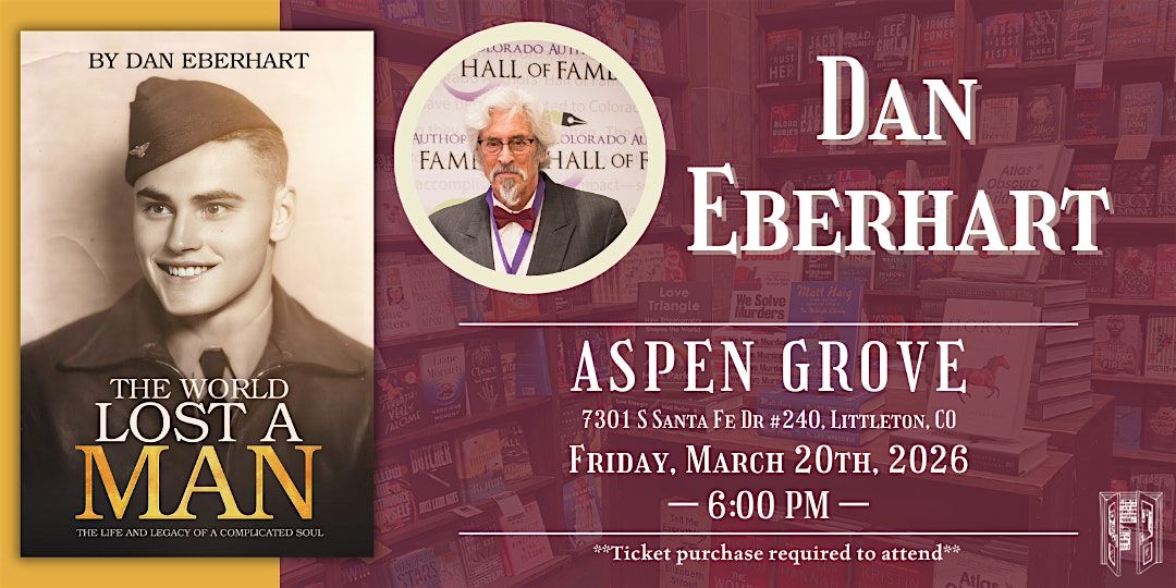 Join us as we celebrate local author Dan Eberhart's biography about his father, Perry Eberhart, Colorado friend and author on Friday, March 20th at 6:00 PM at our Aspen Grove location!