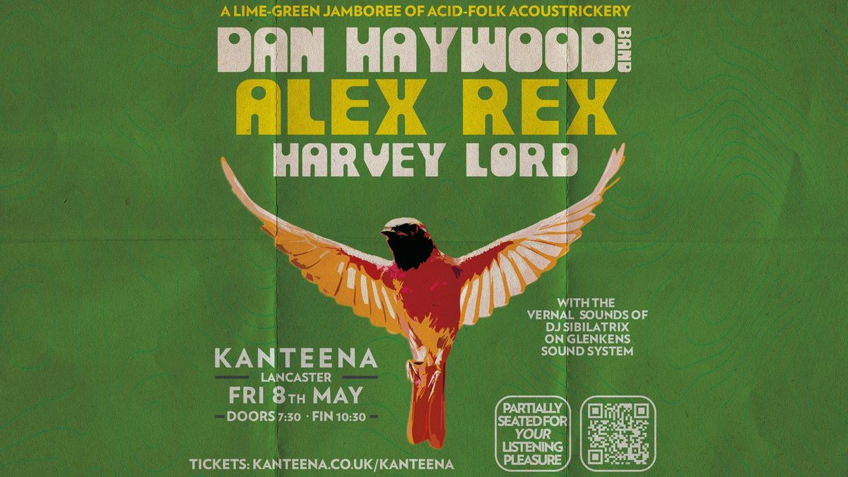 Dan Haywood Band // Alex Rex // Harvey LordMay 8th ; a spring summit of three of the most singular writer-performers in the acid folk / outsider / and freak-confessional spheres.