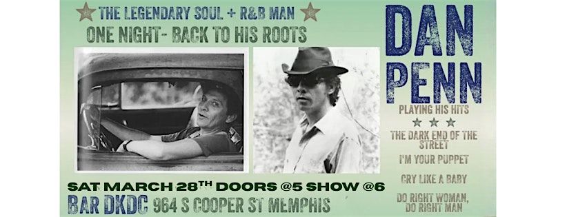 Dan Penn returns to Bar DKDC in Memphis, for one night only playing his hits The Dark End of The Street, I'm Your Puppet & Cry like a Baby