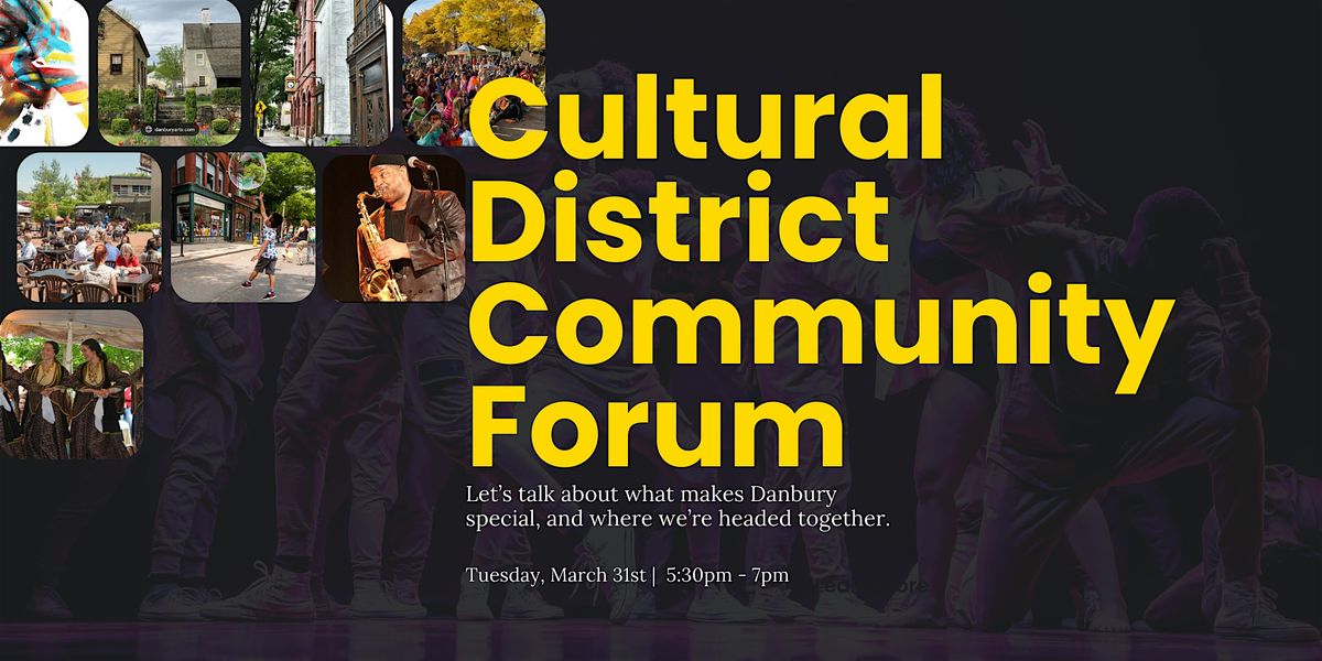 Danbury already has a rich cultural life; from art and performance programs and history and museum, to artists, local businesses, and community events. This forum is designed as a listening session and dialogue, not a final plan presentation.