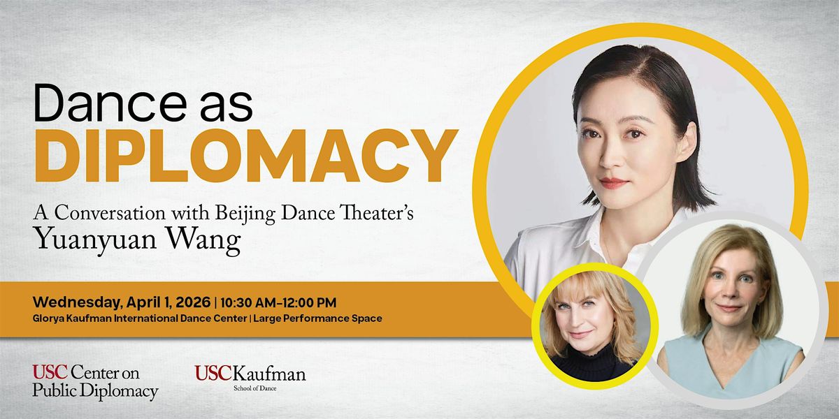 USC Kaufman, in partnership with the USC Center on Public Diplomacy, welcomes internationally acclaimed choreographer Yuanyuan Wang, co-founder and artistic director of the renowned Beijing Dance Theater, for a special conversation exploring dance as a form of diplomacy. Wang will be joined by USC Kaufman Dean Julia M. Ritter and Jennifer Bellah Maguire, Board Chair of Los Angeles Ballet, for a discussion on the power of artistic exchange to foster cross-cultural understanding.