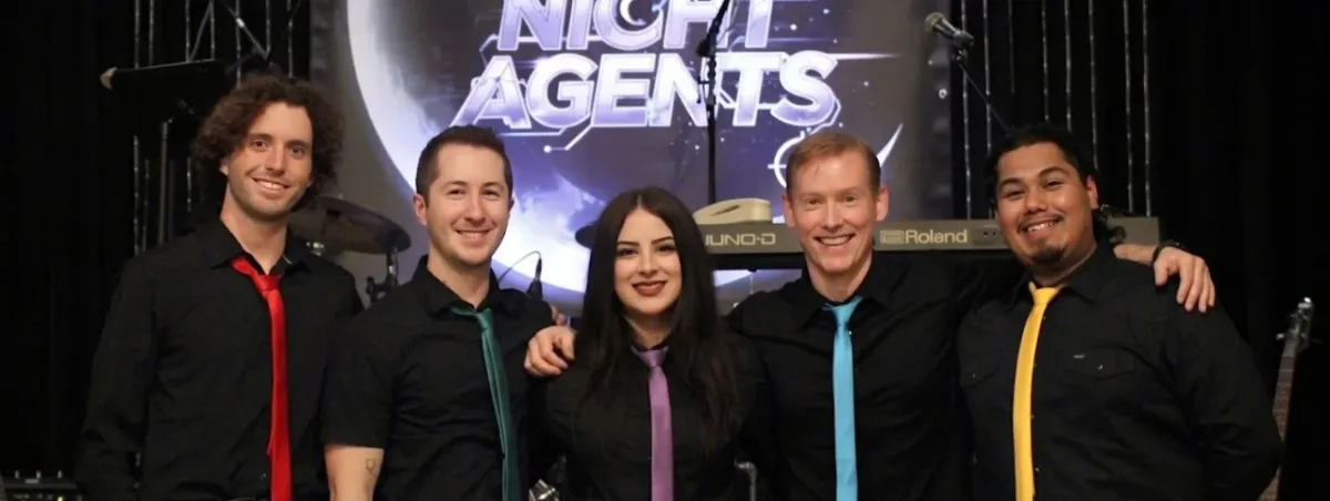 The Night Agents aren’t just a band—they are the ultimate social dance party. Founded by Jeremy Pilling, owner of the Palomar Ballroom, the group was built with a singular mission: to create a cover band that would keep the dance floor packed all night long. Not only can you freestyle to every song, but you can partner dance to every song, something unique to our band.Fronted by the suave male & female lead duo, we deliver an authentic multi-decade, multi-genre experience few bands can match. This intriguing 5 piece band moves effortlessly through rock, pop, hip-hop, and disco. From the grit of ZZ Top and the groove of Michael Jackson to the flow of Young MC and the pure pop of ABBA, the momentum is dramatic and energetic.