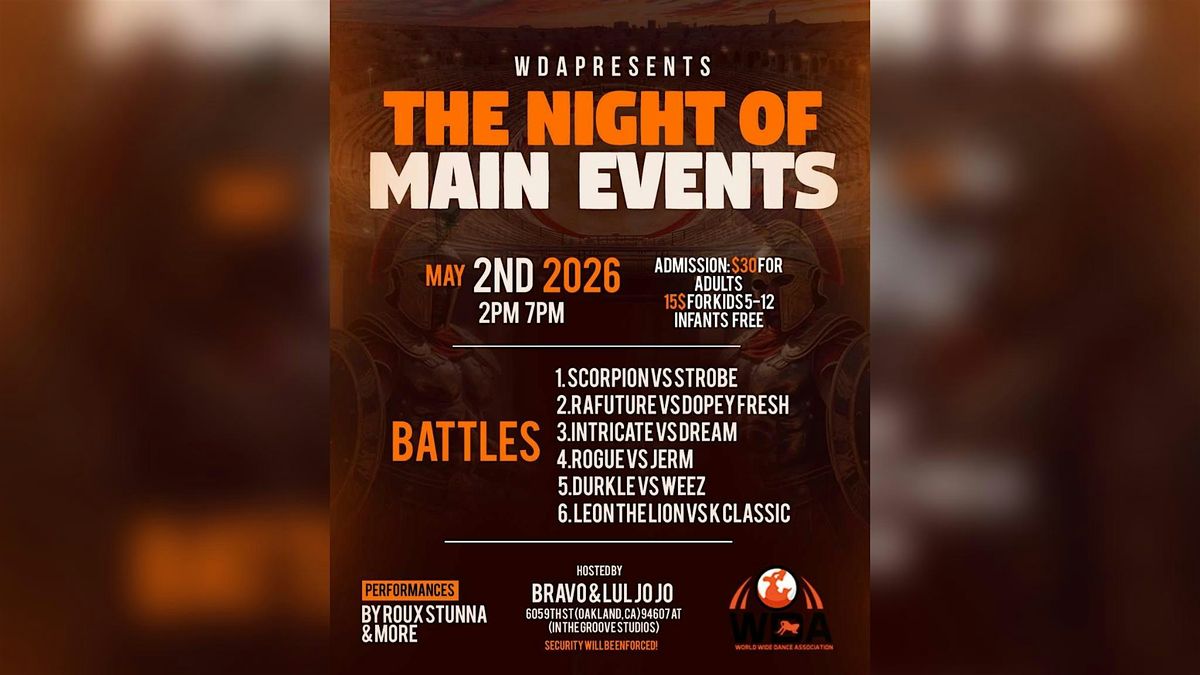 The Night Of Main of Events is a dance battle exhibition amongst some of the best dance artist on the west coast!