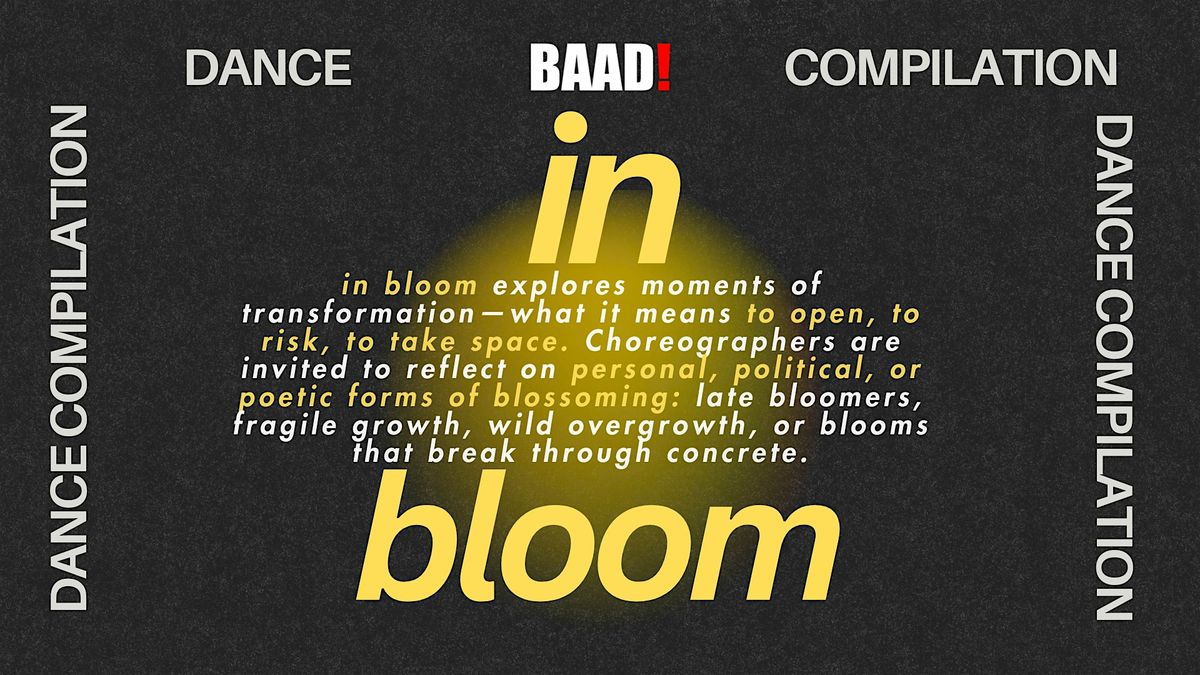 In Bloom explores moments of transformation—what it means to open, to risk, to take space. Choreographers are invited to reflect on personal, political, or poetic forms of blossoming: late bloomers, fragile growth, wild overgrowth, or blooms that break through concrete.
