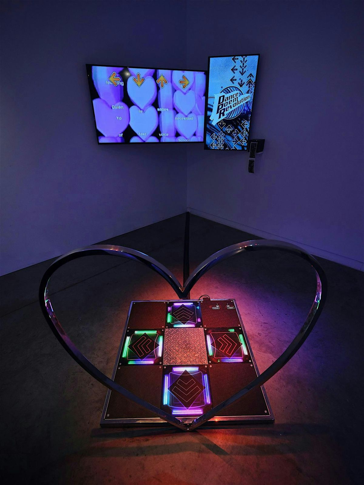 Dance Poem Revolution is an interactive installation inspired by Dance Dance Revolution, where participants generate poems through their movements using a custom-built dance interface. As participants dance, the system responds by generating unique poems, which visitors can take home as a record of their embodied experience of the work. Materials generated through conversations with the public about personal revolutions—both seismic and ordinary—are woven back into the installation, allowing the work to evolve in dialogue with the people and places it encounters.