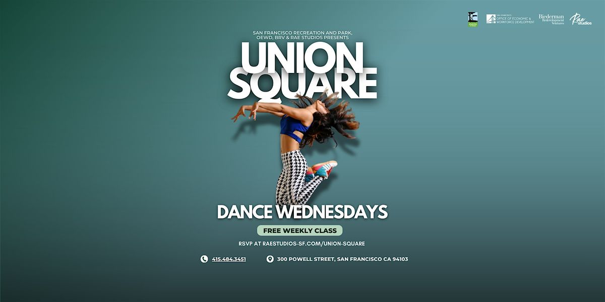 Rae Studios is thrilled to be back as the 2026 programming partner of the San Francisco Recreation & Parks, OEWD, and BRV; providing FREE CLASSES to the Union Square Neighborhood to increase equity and access to dance & wellness for all ages, abilities, and levels. Dance Wednesdays will feature outdoor dance classes provided by Rae Studios on Union Square Plaza (Across the street to Macy’s). Classes offered will range from Hip Hop: Grooves, Shuffle, K-Pop and Salsa. All classes offered will be free and easy to follow. We encourage all participants to sign up in advance to help the instructor prepare for a successful class. We are thrilled to be a part of this amazing new addition to the Union Square neighborhood. See you on the square!
