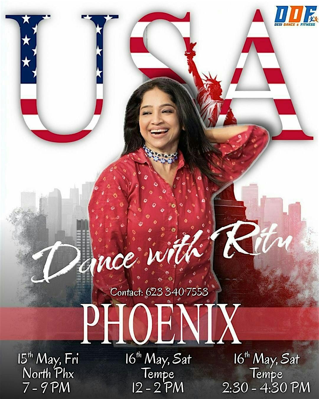 Get ready to shake a leg and learn some amazing Bollywood moves in person! Join Celebrity Choreographer Ritu for a fun and energetic workshop right here in Phoenix. Whether you’re a beginner or a pro, this is your chance to dance like the stars and soak up some cool Bollywood vibes. Don’t miss out on this awesome dance experience – bring your friends and let’s get grooving!