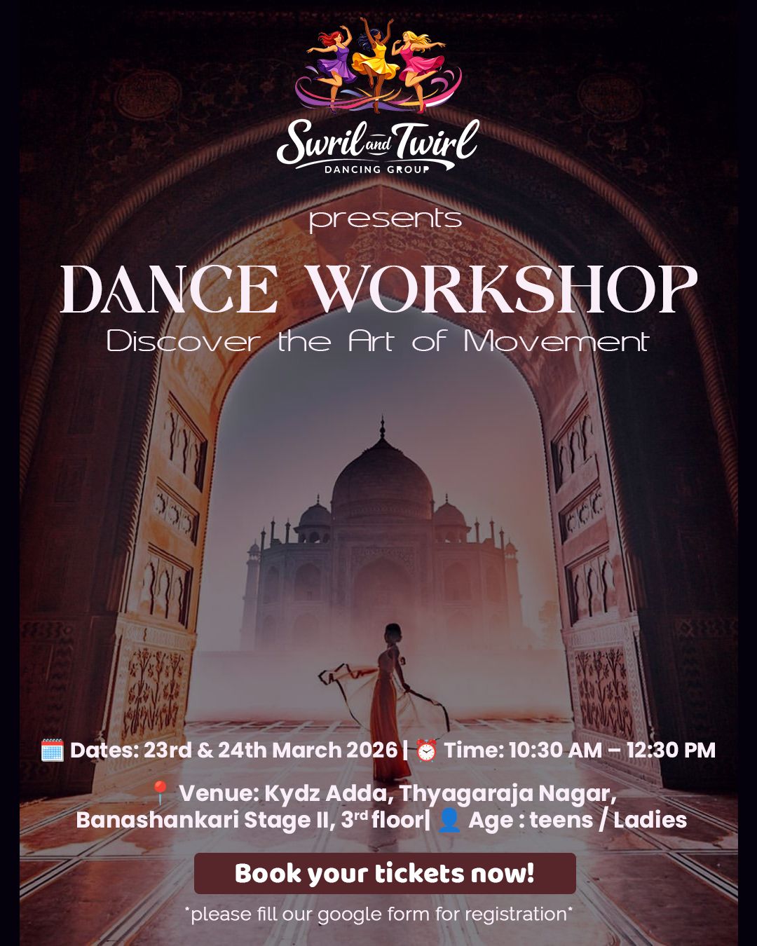 Immerse yourself in the world of dance as our expert instructors guide you through a series of dynamic movements and choreographies. Whether you're a seasoned dancer or a complete beginner, this workshop is designed to cater to all levels of experience.