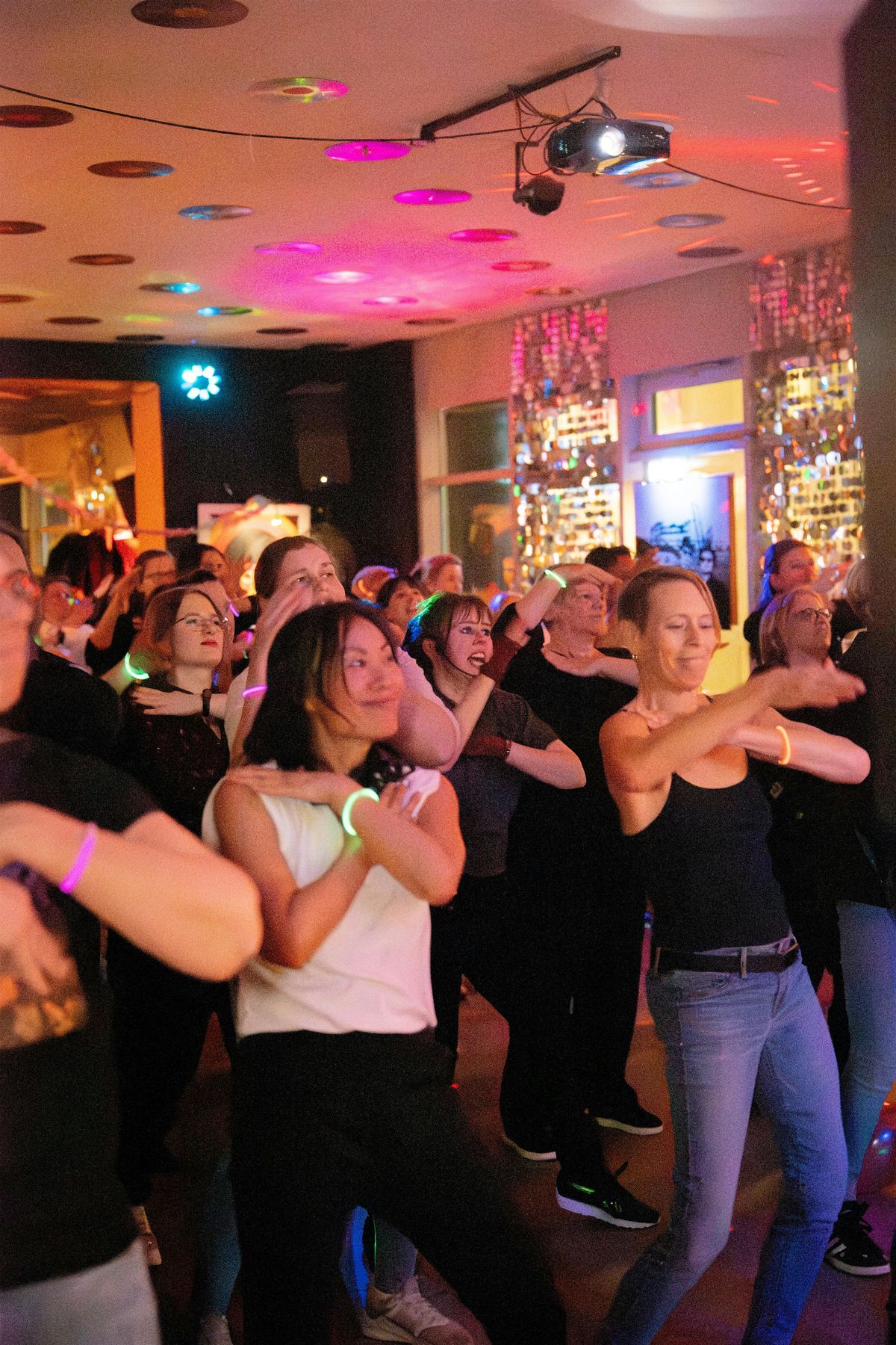 🙅♀️🍹 Anders als im normalen Club stehst du hier nicht awkward mit dem Drink am Rand, sondern tanzt komplett ohne Leistungsdruck und synchron mit hunderten Gleichgesinnten. 🙌💃