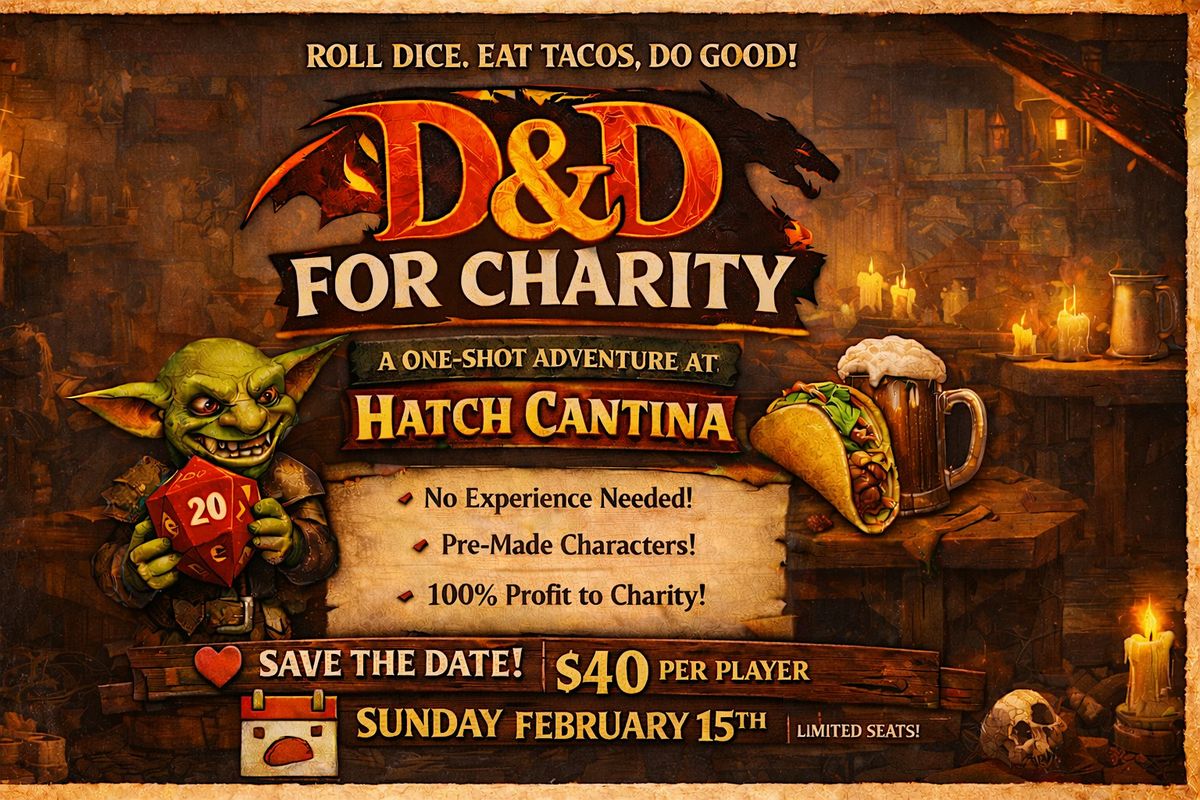 Join us for a Dungeons & Dragons one-shot where 100% of ticket profit go to charity (and 100% of goblin decisions go terribly).