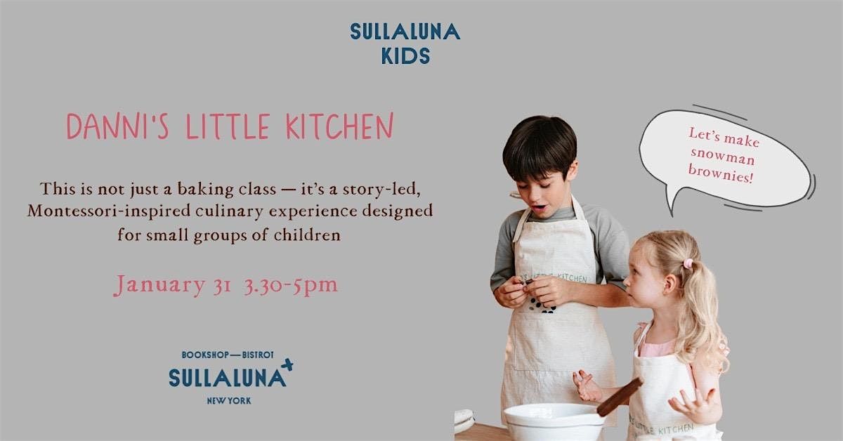 Danni’s Little Kitchen at Sullaluna NYC is a cozy, story-led cooking workshop where children gather to read Snowman Brownies and then bring the story to life by making their own snowman brownies from scratch.
