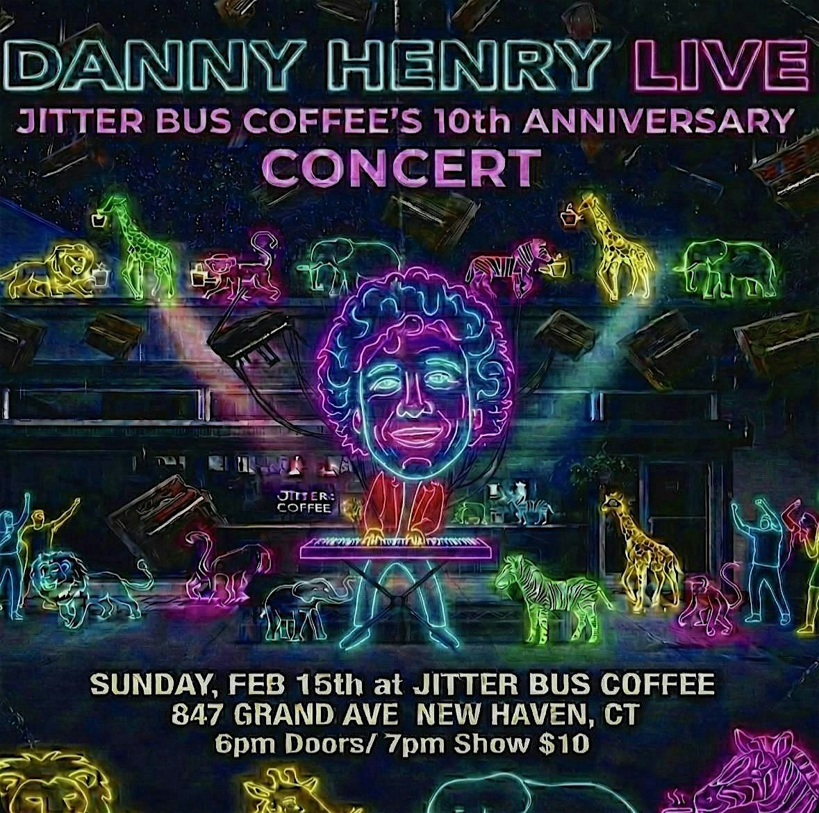 Danny Henry will be live and in concert at Jitter Bus Coffee in New Haven to celebrate the 10th Anniversary of the Jitter Bus. Long since banished to California, Danny will be gallantly returning to his homeland of Connecticut for One Night Only to play an intimate concert for his Nutmeg State brethrin. It will be an intimate performance where Danny will tell stories, sing songs with all of his heart, and be the lounge act he claimed he was going to one day be when he was peaking in middle school. There will be decadent offerings provided by the Jitter Bus for purchase. Seating is limited, but please feel free to bring a chair from home. BYOB- Drink up with your pinkies up, responsibly.