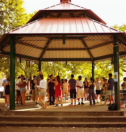 Venez apprendre à danser la salsa et la bachata au parc ! Nous dansons dans un magnifique kiosque au cœur de Little Italy. Qu'il pleuve ou qu'il fasse beau, nous dansons !