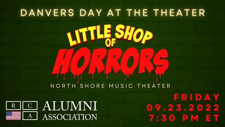 Danvers and Danvers area alums: We are going to the theater! Join your fellow alums for a night out at North Shore Music Theater featuring the smash hit musical, Little Shop of Horrors. You don’t want to miss out on the fun and the side splitting laughs.Your tickets will be covered by the RCA Alumni Association, but we can only make spots for those who register! Please be sure to register both yourself and your plus one if you are planning to bring one.