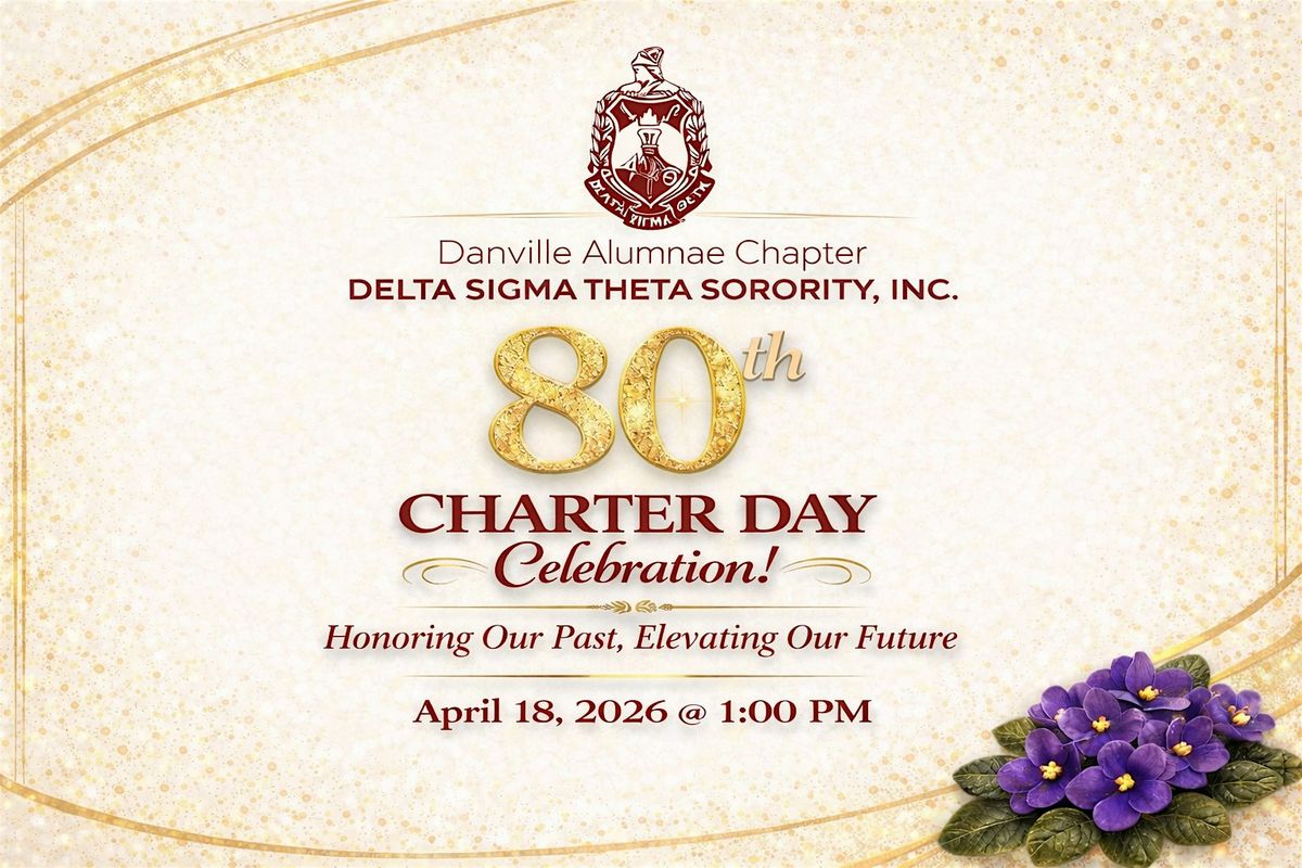 The Danville Alumnae Chapter of Delta Sigma Theta Sorority, Inc. cordially invites you to celebrate our 80th Charter Day Celebration—a momentous occasion marking 80 years of service, leadership, and commitment to uplifting our community.