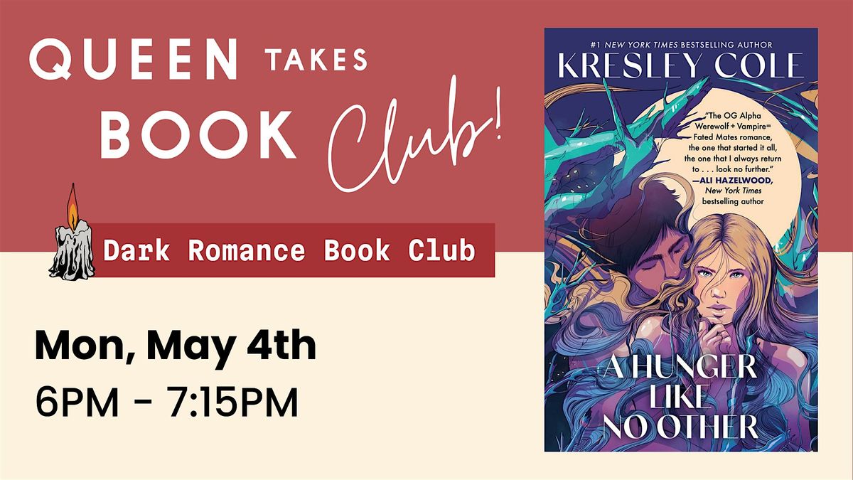 Join us for our Dark Romance Book Club on Monday, May 4th at 6:00pm. This month we'll be reading "A Hunger Like No Other" by Kresley Cole.
